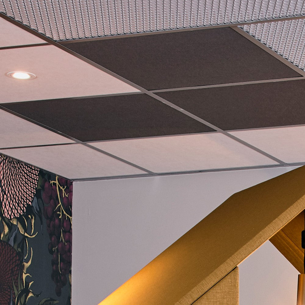 Loftet er typisk stedet, hvor man starter med at lave akustikregulering. Det er nemlig en effektiv måde at absorbere uønsket støj på, men er også en fordel fordi det ikke er i vejen, enten synsmæssigt eller fysisk, for dem der arbejder i lokalet.