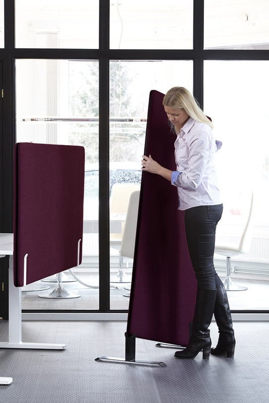En af de billigste måder at løse akustikproblemer på, er at købe en akustik skillevæg fritstående som rumdeler i det åbne kontorlandskab. Vores skillevægge står enten på hjul eller fødder.