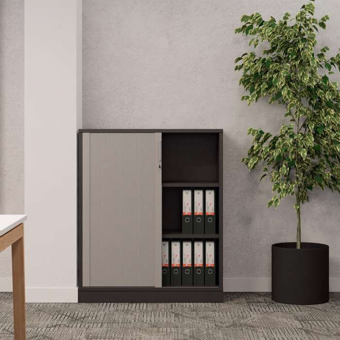 Jalousiskab til kontor. Skabet har 3 store rum og 2 flytbare hylder. Der er lås på og 2 nøgler medfølger. Skabet lever derfor optil lovkravet om håndtering og opbevaring af persondata jf. persondataloven.
