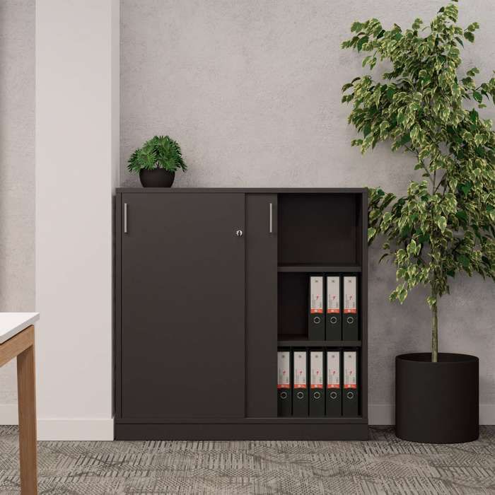 Kontorskab med skydedøre - 6 rum - 120 x 120h